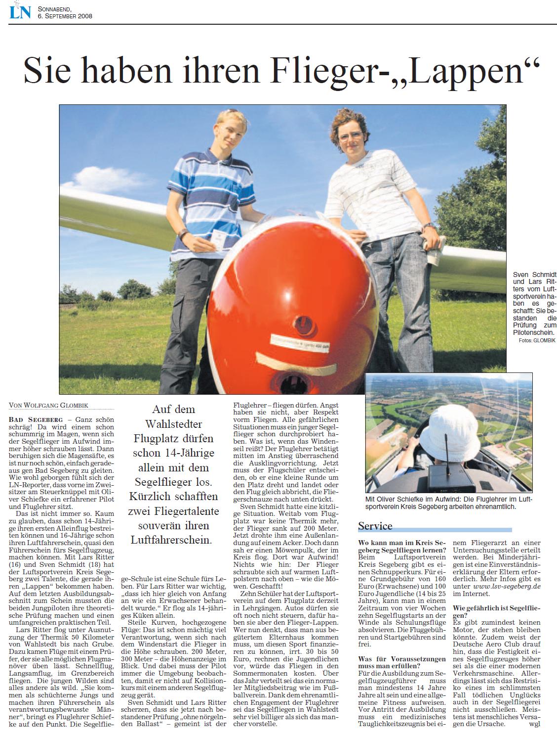 ven Schmidt (18) und Lars Ritters (16) haben es geschafft: Sie bestanden die Prüfung zum Pilotenschein.
