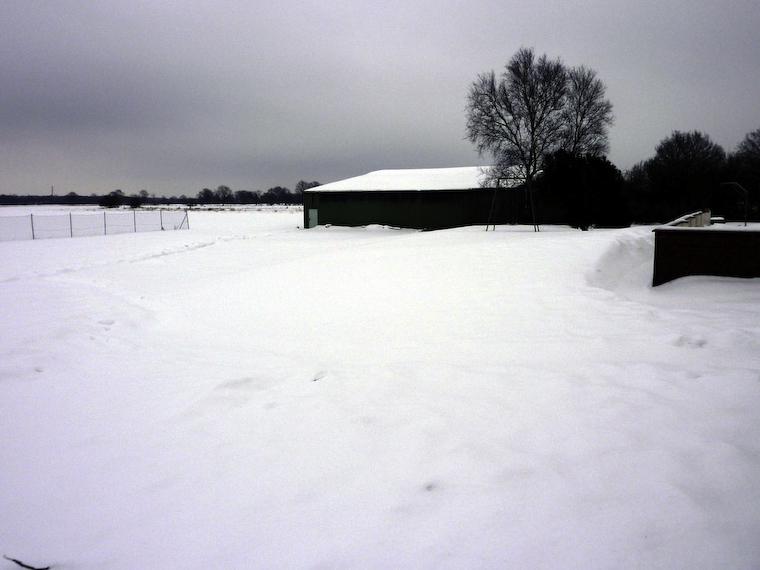 Die Werkstattarbeit geht unter Jens' Leitung gut voran, nur der Schnee vor unserer Halle müsste mal wegtauen, damit wir an die Flugzeuganhänger kommen. Solange sind die Halle und die Nebengebäude nur über den, am Samstag freigeschaufelten Fußpad erreichbar.