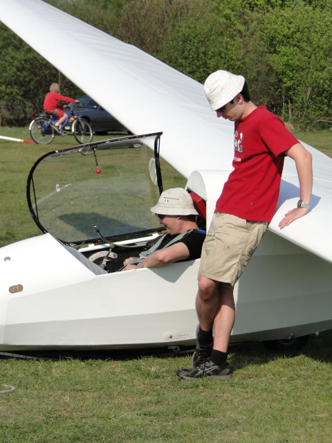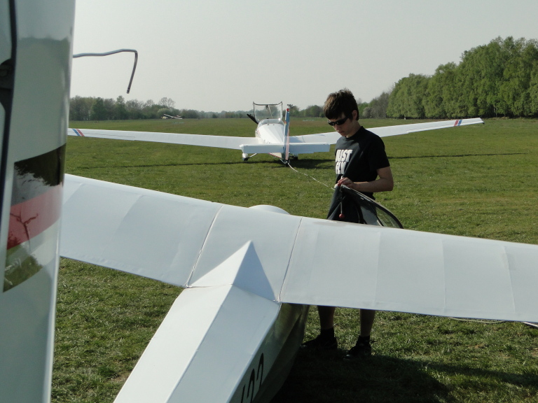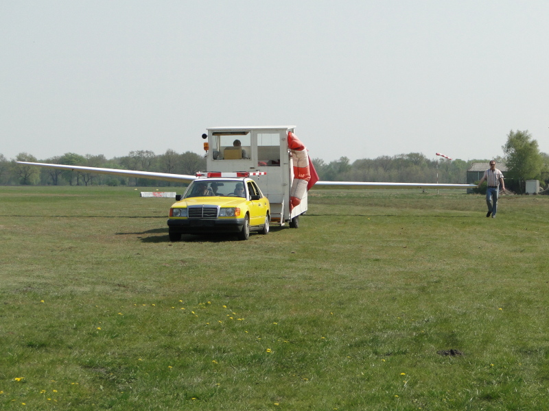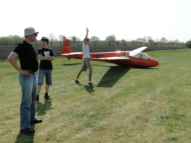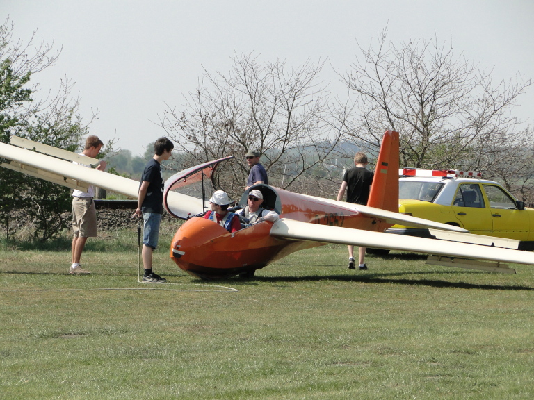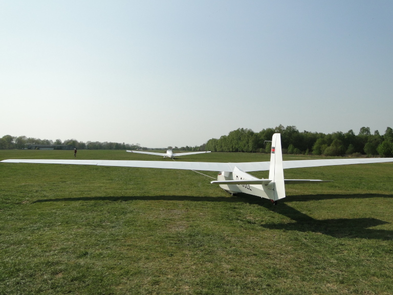 m 26. April führten wir einen ersten F-Schlepptag zur Verlängerung von F-Schleppberechtigungen sowie zur Schulung der Schleppberechtigung durch. Insgesamt 29 Schlepps kamen hierbei zusammen. Unserem Schlepppiloten Oliver Thomsen und den geschleppten Piloten wurde viel abverlangt, zumal der Wind an diesem Tage genau aus Nord blies. Mal mehr, mal weniger quer zur Piste stehend löste der Nordwind ordentliche Verwirbelungen hinter dem Birkenwäldchen aus. Es war also höchste Konzentration gefordert um den fliegerischen Anforderungen gerecht zu werden. Im Laufe des Nachmittags vereitelte dann ein „Plattfuß“ am Hauptrad der ASK 13 -wenn auch schnell repariert- weitere Doppelsitzerschlepps.