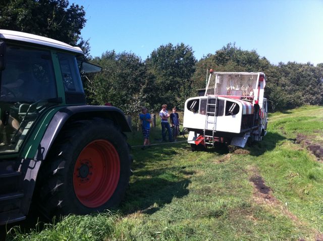 Mit schwerem Gerät wurde die Winde ohne jeden Schaden geborgen und wieder heimwärts gezogen. Dann wurde der Weg noch repariert und der Flugtag endgültig abgesagt. Da die Winde nun anderweitig zur Verfügung stand, wurde sie auch gleich noch zur "Überführung" des Duo-Hängers verwendet.