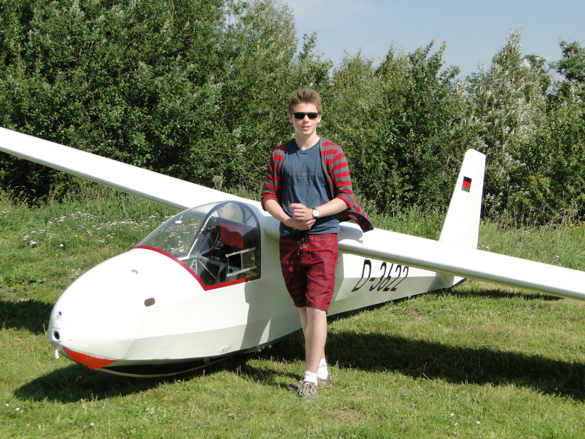 hristian Bielenberg hat es geschafft. Am letzten Sonntag setze er mit der praktischen Prüfung auf dem Segelfluggelände Aukrug den Schlußpunkt zu seinem Luftfahrerschein für Segelflieger. Bereits während unseres Sommerlagers in Bayreuth hatte er die letzte Vorbedingung - den 50-Kilometerflug - auf der Ka8 D-3622 mit einem Flug am 2.8.2011 von Bayreuth nach Bamberg und zurück zum Bindlacher Berg über die stolze Distanz von 129 Kilometern absolviert.
