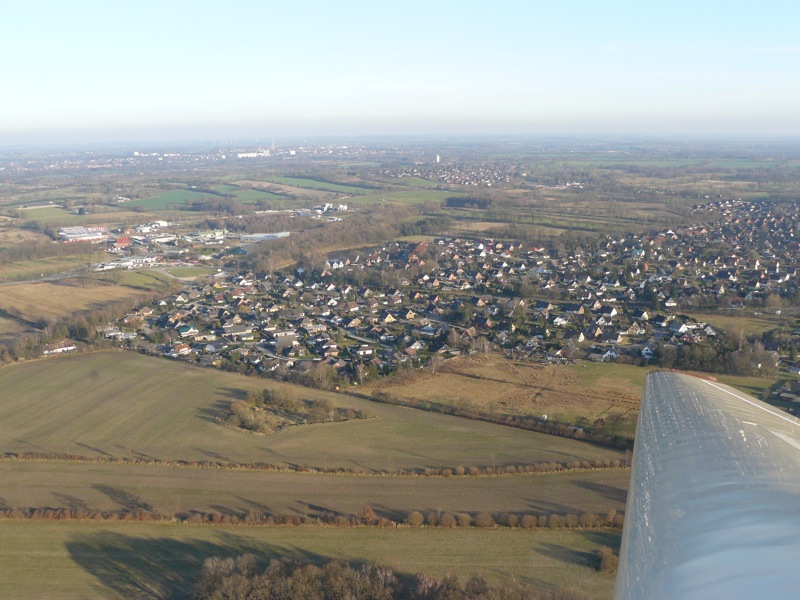 Ausblick, der bis nach Lübeck reichte. Die Landung übernahm zwar der Fluglehrer vom hinteren Sitz, aber das